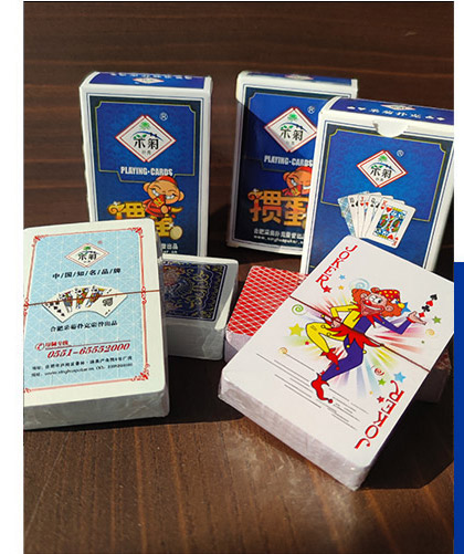 公司優勢:安徽省內一家制作加工撲克牌及學習卡片工廠,多年來贏得了廣大客戶的信賴。產品涉及廣告、禮品、收藏等各個領域,形成了普通橋牌、各類異形卡片三大系列。